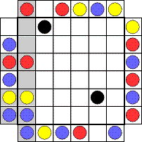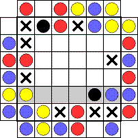 黒があるため、下から2段目に青が入る。黄が決まるが、赤はまだ決まらない